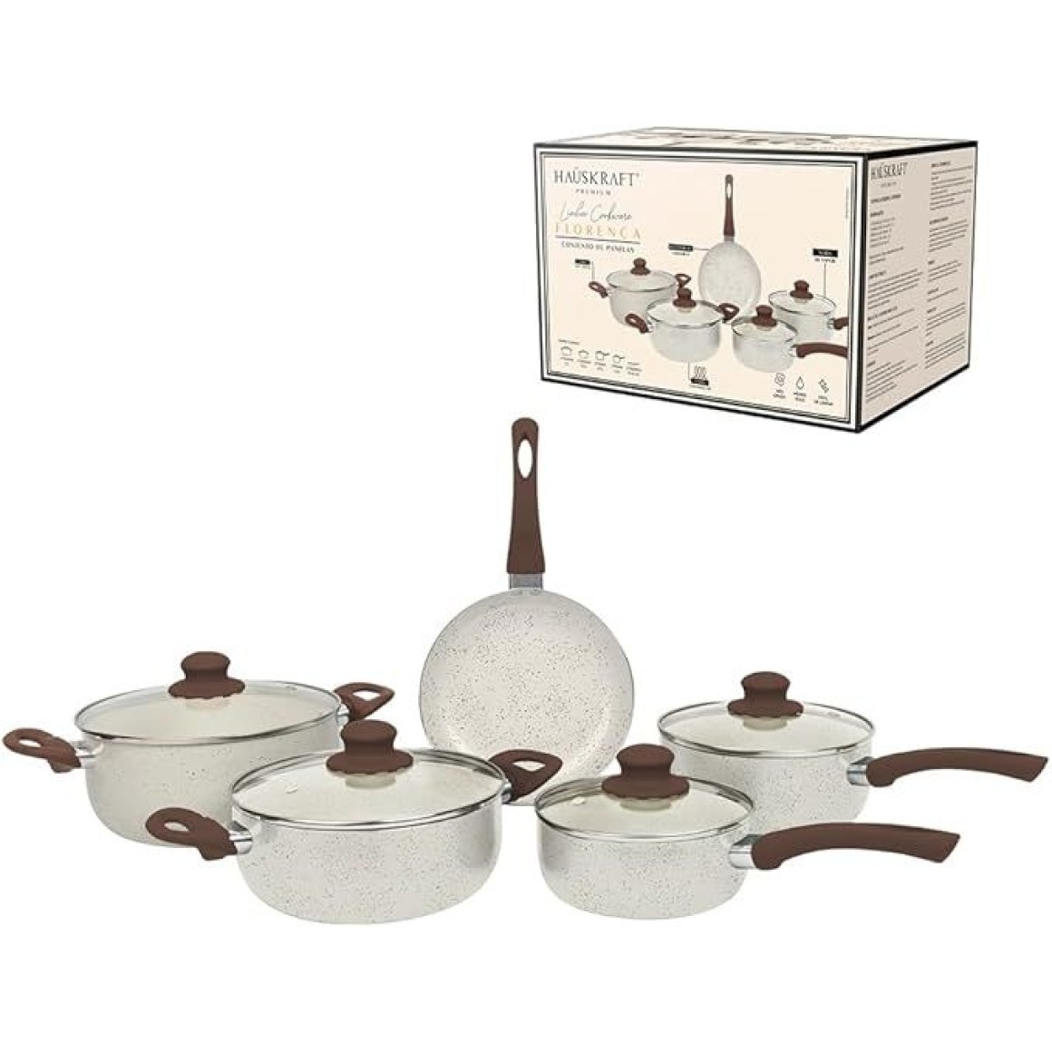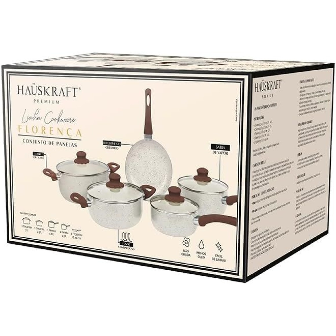 Conjunto de panelas com indução Florença vanilla 5 peças pan07vai