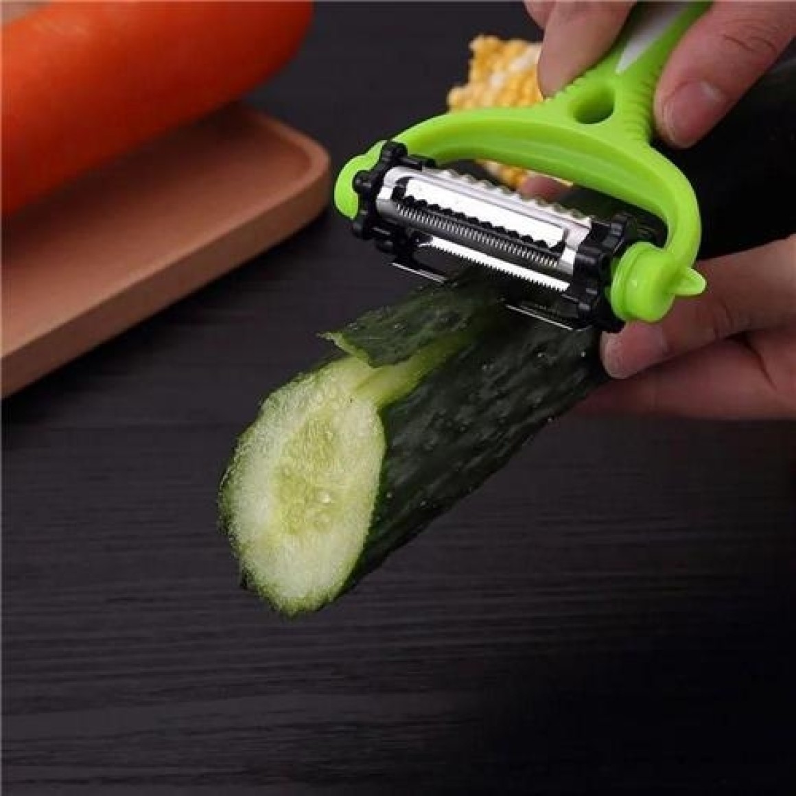 Basta que você deslize a lâmina escolhida sobre o alimento com rapidez e pronto, o legume será descascado de maneira muito rápida e simples.